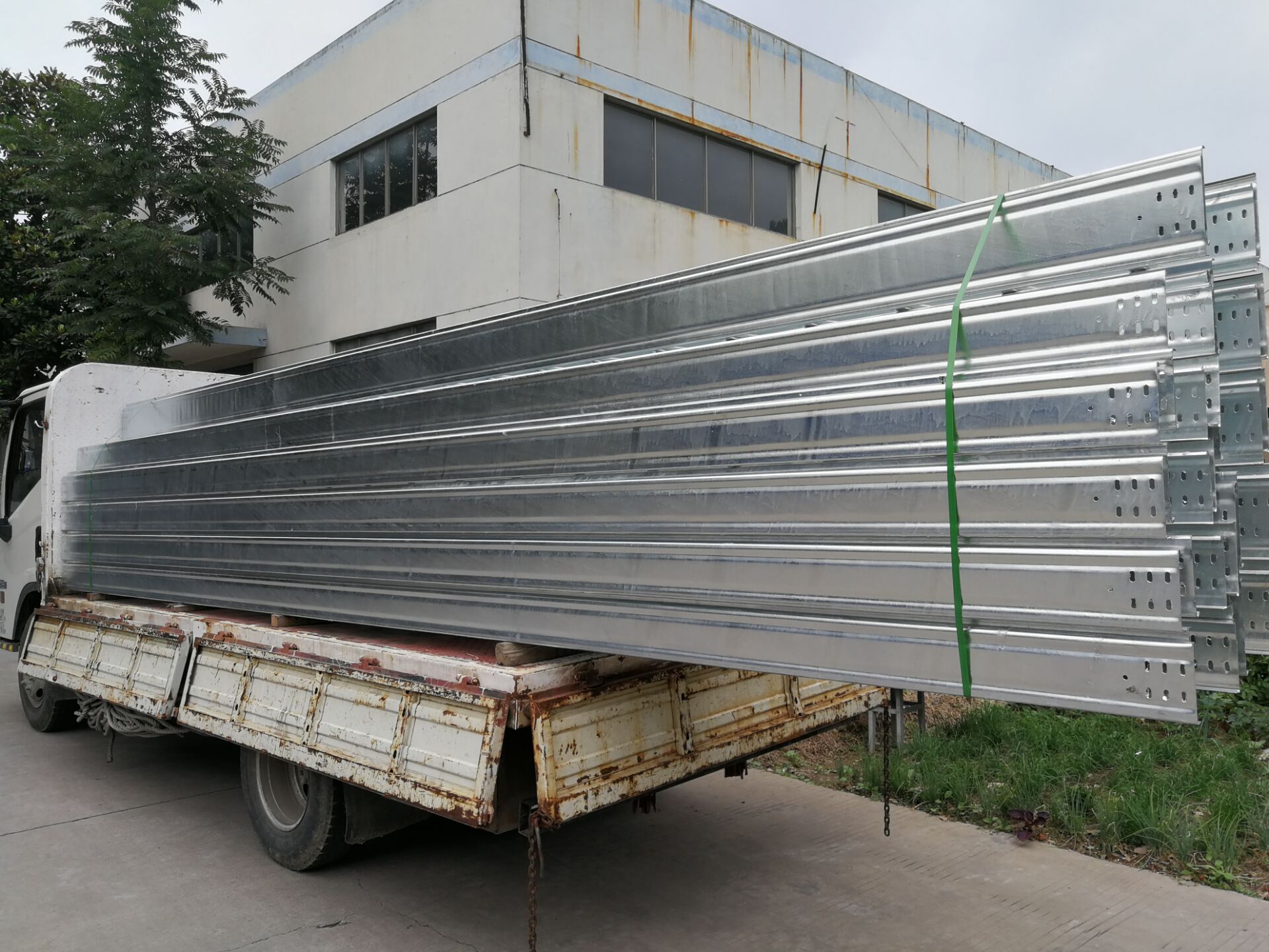 熱鍍鋅電纜橋架:以冷軋鋼板制成,表面工藝為熱鍍鋅,由槽式、托盤(pán)式或梯級(jí)式的直線段、彎通、三通、四通組件以及托臂(臂式支架)、吊架等構(gòu)成具有密接支撐電纜的剛性結(jié)構(gòu)系